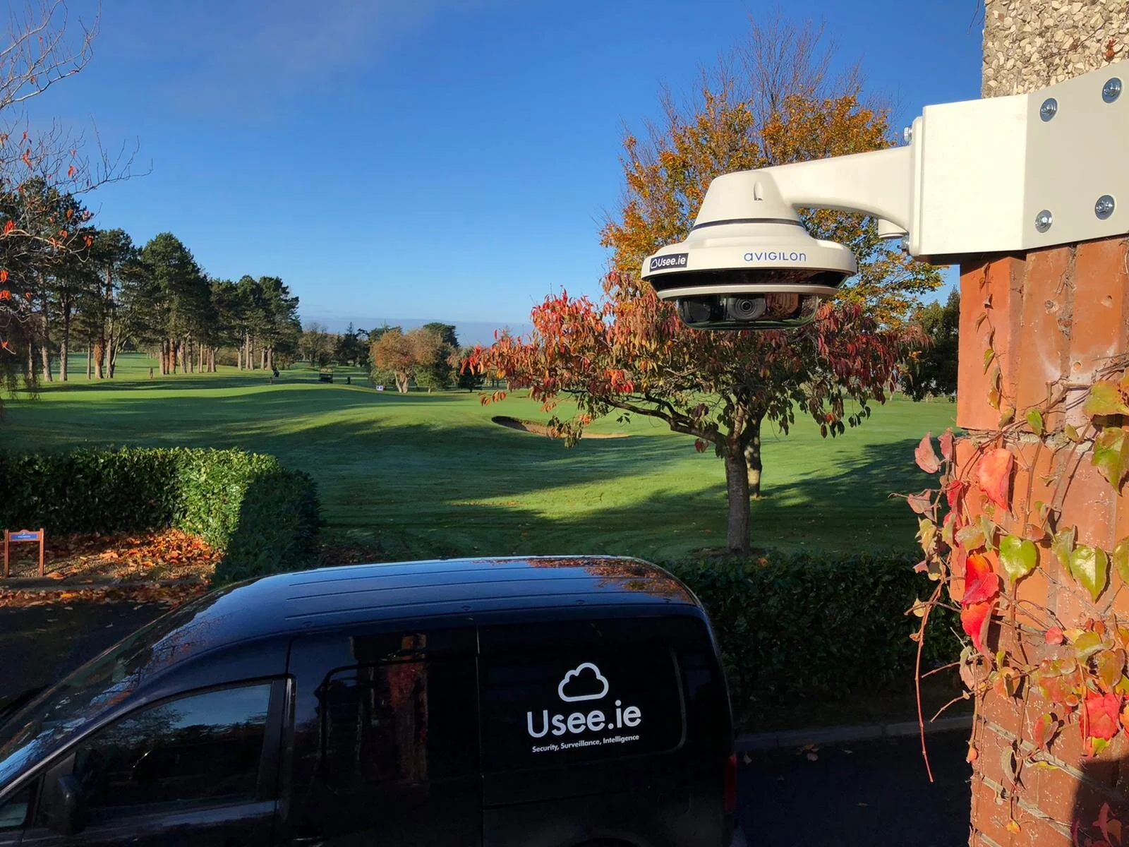 This Avigilon Multi-Sensor camera has replaced a total of four cameras on the corner of the club house at Beaverstown Golf Club. Its magic! Reduced camera count, increased coverage, increased definition, reduced power footprint and people & vehicle indexing as standard. The second & third Holes at Beaverstown Golf Club also looking great shaded by autumnal trees. This is #premiumcctv & #premiumsecurity. #cctv #avigiloninaction#areyougettingus we are #reinventingsecurity®